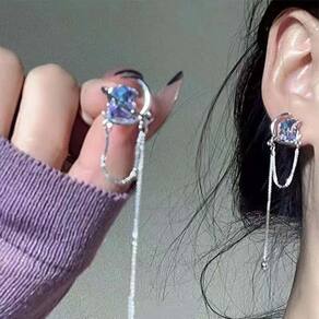 Par de Brincos Feminino Luxo Pedras Roxo Moderno Franja