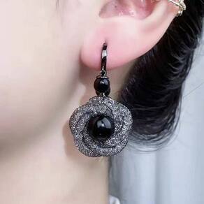 Par de Brincos Feminino Preto Flor Luxo Casamento