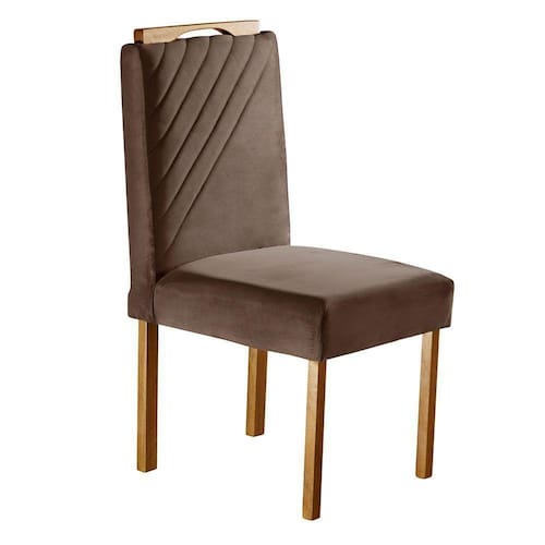 Características Técnicas Cadeira: Material da Estrutura: Madeira Maciça de Eucaliptus Tratado, 100 Imunizado e Seco em Estufa. Assento: Espuma D26 Soft Real. Encosto: Espuma D18 Soft Real. Aplique no Encosto(Puxador): Sim. Assento/Pés: Reforçado. Tecido Cadeira: Veludo. Cor do Tecido: Marrom Havana. Embalagem Cadeiras: Caixa de Papelão (Duas cadeiras montadas por caixa).