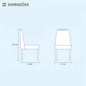 Informações Técnicas Cadeira: Marca: Móveis Mundial Modelo: Safira Material da Estrutura: Madeira Maciça de Eucaliptus Tratado, 100 Imunizado e Seco em Estufa. Assento: Espuma D26 Soft Real. Encosto: Espuma D18 Soft Real. Aplique no Encosto-Puxador-: Sim. Assento/Pés: Reforçado. Tecido Cadeira: Veludo. Cor do Tecido: Bege. Embalagem Cadeiras: Caixa de Papelão -Duas cadeiras montadas por caixa-.