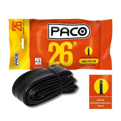 Câmara de ar para bicicleta aro 26 da marca Paco.