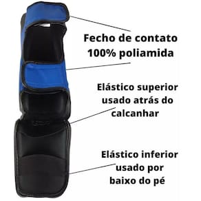 Proteção extra na junção dos pés e canelas, 2 camadas de eva no pé, uma de 10 mm e outra de 5 mm com tecido acoplado na parte de baixo.