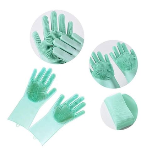 Par De Luvas Com Esponja Silicone Lava Louças Multiuso Verde Prático e funcional este Par de Luvas Com Esponja em Silicone Multiuso é bem simples de usar, basta colocá-la nas mãos, molhá-la na pia e colocar sabão detergente em contato com as cerdas e pronto. A luva poderá ser utilizada como uma esponja comum, permitindo que as louças sejam lavadas de forma extremamente simples e confortável. O grande diferencial deste item está na junção da esponja e da luva para lavar louças no mesmo objeto. Isso permite que o ato de lavar louças fique muito mais prático e confortável. Além disso, o material em silicone é totalmente reutilizável e higiênico, não retendo cheiros nem restos de comida. Pode ser utilizado para lavar panelas em teflon, limpar azulejos, cozinhas, banheiros, lavar carros, pegar panelas quentes e muito mais. A luva pode ser esterilizada com facilidade em máquinas de lavar louças ou com água fervente