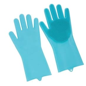 Luvas feitas de 100% silicone super resistente que não absorve a água, com cerdas macias na extensão da palma da mão para facilitar a limpeza pesada ou tarefas mais simples.