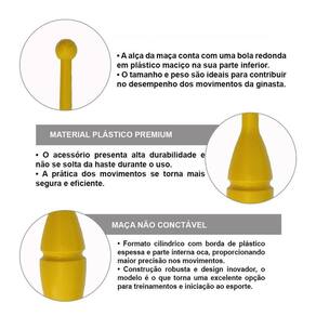 Maça Ginástica Rítmica infantil produzida em termoplástico de alta resistência a impactos, medindo 35cm de comprimento e pesando 150 gramas. Indicada para treinamentos e campeonatos.