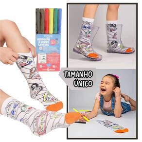 Par de Meias Divertidas para Colorir Duck Goods + Kit Canetinha 6 Cores Laváveis: Pintou - Lavou - Pintou de Novo. São diversos personagens divertidos para colorir e brincar. Ideal para presentear, estimulando a criatividade e a imaginação da criança. O kit acompanha 6 cores de canetinhas laváveis, não toxicas, nas cores: preto, amarelo, azul, verde, vermelho e marrom. Tudo muito prático e divertido! Pintura removível, sai facilmente na lavagem. Pintou, lavou, pintou de novo. Meia em tamanho único, atendendo numerações aproximadas de 26 a 34 - atendendo crianças de 5 a 12 anos aproximadamente. Composição: 70% algodão, 28% poliamida, 2% elastano. Cor branca com desenhos de personagens para colorir. Modelo 3/4. Atenção: Produto de alto giro, recebemos novas remessas semanalmente e algum detalhe pode variar conforme o lote recebido, porém o produto é o mesmo e mantém as mesmas características e qualidade. Produto fabricado no Brasil. Somos revendedores autorizados da marca. Contém: 1 Par de Meias Divertidas + 6 Cores Canetinhas Laváveis. Fotos ilustrativas e reais do produto. Marca: Não Informado