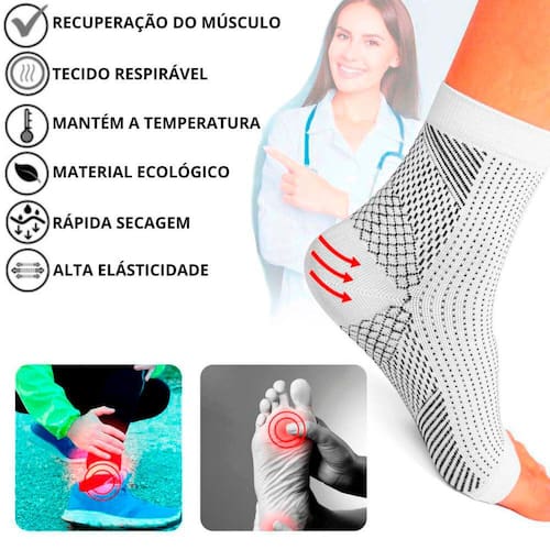 Benefícios: Alivio de dores e inchaço, correção da pisada, pés firmes, melhora a circulação, acelera a recuperação de dores musculares, diminui a sensação de cansaço nas pernas e sensação de pernas queimando, fácil de usar, confortável, lavável, sem contra indicações.