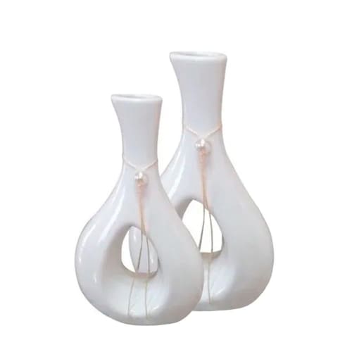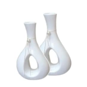 Par de vasos furados em cerâmica de aparador decor - branco Par de vasos furados em cerâmica de salas e aparadores decorativos