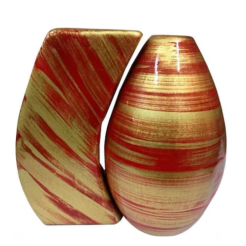Par de vasos turim em cerâmica de sala decor - red gold Par de vasos turim em cerâmica de sala e aparador decorativo