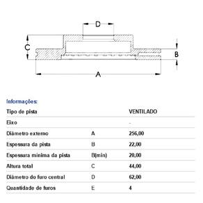 Espessura da pista B: 22,00