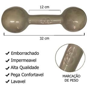 Especificações técnicas: - cor: enviado de acordo com a disponibilidade. - material: ferro fundido emborrachado - peso: 04kg - medida comprimento: 32cm - medida pega: 12cm - impermeavel - lavavel - pegada confortavel, encaixe perfeito para as mãos