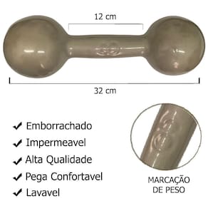 Especificações técnicas: - cor: enviado de acordo com a disponibilidade. - material: ferro fundido emborrachado - peso: 04kg - medida comprimento: 32cm - medida pega: 12cm - impermeavel - lavavel - pegada confortavel, encaixe perfeito para as mãos