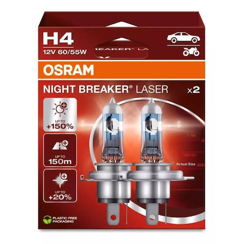 Confira a nova geração Night Breaker Laser - a lâmpada halógena da Osram que entrega maior performance e segurança a você! Usando uma tecnologia inovadora a laser, as lâmpadas entregam um brilho até 150% maior em comparação com o padrão legal mínimo, através de um filamento altamente projetado, que garante uma saída de luz extra. Assim, as lâmpadas fornecem um feixe de até 150 metros de comprimento e uma luz até 20% mais branca também em comparação com o padrão legal mínimo. Com uma visibilidade mais leve e melhorada, o produto é essencial para ajudar os motoristas a identificar e reagir aos riscos de tráfego de uma maneira mais rápida.