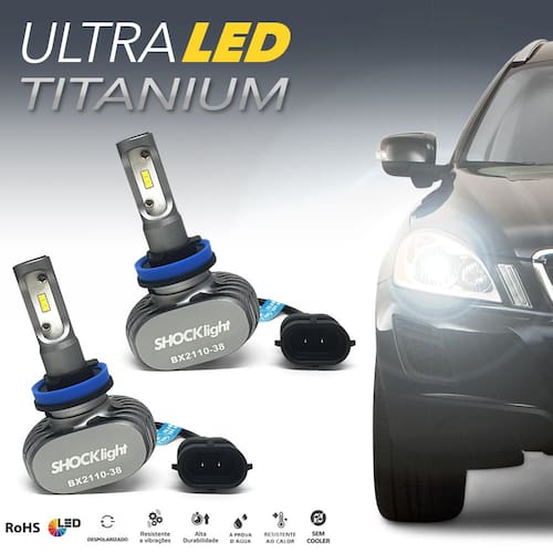 Par Lâmpadas H8 Farol Milha Nissan Kicks 2016 2017 Ultra Led Titanium 10000 Lumens Forte Branco Efeito Xenon