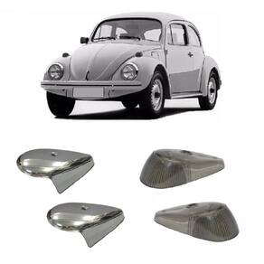 Par Lente Fumê Pisca Dianteiro + Capa Cromada Metal Fusca