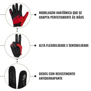 Enquanto outras luvas infantis sufocam ou perdem aderência, este modelo resistente oferece revestimento antiderrapante nos dedos, garantindo controle total nas manoplas, além de modelagem anatômica que se adapta perfeitamente às mãos das crianças.