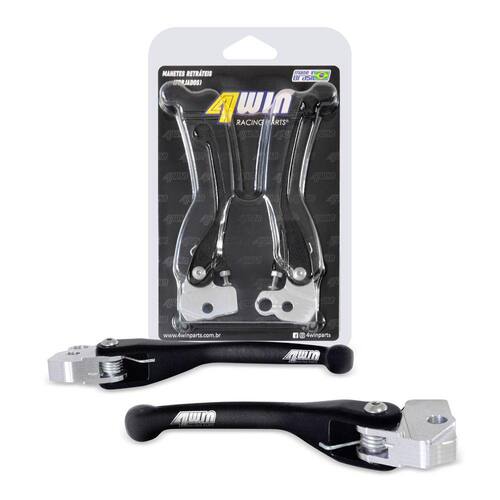 O Manete Retrátil 4Win foi desenvolvida para se retrair quando a moto sofrer uma queda, assim evitando que se quebre e caso tenha contato com piloto, evita uma lesão.Produzido por processo de forjamento em alumínio especial, ergonomicamente confortável como o manete de fabrica, pintura em epóxi.Angulações projetadas para alívio de embreagem e funcionamento de freio e embreagem mais sensível e precisa, sendo duas posições de instalação do cabo da embreagem, uma na posição de fabrica e outra aliviada.De fácil instalação, não é necessário adaptação em sua fixação.Comprimento manete embreagem: 16,5cm.Comprimento manete freio: 13,5cmPeso: 212g.Item incluso:1 - Par manete.Aplicação:KXF 450 2019 Em diante.KXF 250 2021 Em diante.KX 250 X/XC 2021 Em diante.KX 450 X/XC 2021 Em diante.Nosso compromisso com o cliente:1 - Em caso de devoluções, o reembolso é feito no ato da postagem ou no máximo 24 horas após o produto chegar em nosso centro de distribuição.2 - Embalagens seguras contra quebras.3 - Entregar excelência.4 - Cliente tem 7 dias corridos para arrependimento da compra.