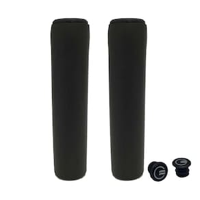 Manoplas de silicone super leves e confortáveis Ideal para mtb Comprimento total 130 mm Acompanha plugs de plástico para acabamento no guidão Cor: preta Peso: 30 g par