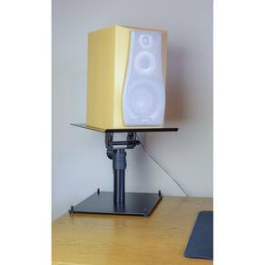 Compatível com monitores de referência/estúdio de 4 a 8 polegadas. Altura ajustável de 25,5 cm a 34,5 cm. Inclinação da bandeja de 90 graus. Capacidade de carga: 20 Kg. Material: aço.Demonstração 360º