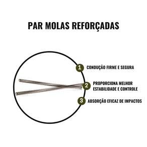 Projetadas para absorver e dissipar a energia dos impactos, essas molas mantêm as rodas em contato constante com o solo, assegurando maior controle e equilíbrio, especialmente em altas velocidades e terrenos acidentados.