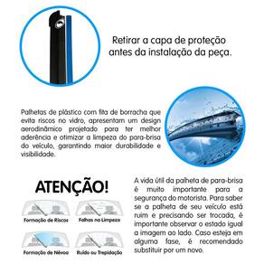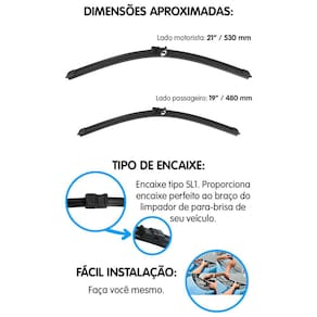 A palheta automotiva possui alta qualidade em plástico e borracha, garantindo durabilidade, resistência e visibilidade impecável. Fácil instalação com encaixe sob medida e haste maleável para limpeza uniforme do para-brisa. Conectores fixados por plugue de encaixe garantem firmeza durante o uso. Sua memória de curvatura adapta-se a cantos de vidros côncavos, proporcionando limpeza completa e eficaz. Efetue trocas periódicas de sua palheta para continuar dirigindo com confiança e encarando a chuva sem preocupações! As palhetas de para-brisa medem 21" e 19" polegadas.