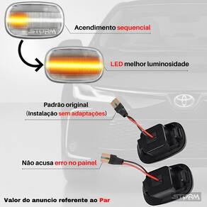 Par pisca seta sequencial toyota corolla led dinâmica sedan Cor: cristal Somos a storm parts, vendemos peças importadas e nacionais de alta qualidade e com , seu carro merece o melhor, ele merece as peças da storm parts. Seta pisca sequencial toyota corolla Produto totalmente plug and play, sem necessidade de adaptação, compatível com o modelo , não acende luz no painel, fácil instalação basta remover a luz e instalar a nossa luz led, anuncio referente ao par lado esquedo + lado direito Compatível com: Toyota corolla 2002 até 2008 Toyota corolla fielder 2002 até 2008 - obs: compatível com as versões que possuem a seta no para-lama Especificações: Condição: novo com . Origem: Tipo: pisca de direção lateral, acendimento sequencial Cor luz led: âmbar Cor externa: fume e cristal escolher modelo desejado Potência: 3w Tensão: 12v Material: caixa abs + luzes led Modelo: luz led Principais perguntas: P. Possui R. Sim, todos nossos produtos emitimos em nome do comprador cadastrado. P. Necessita adaptação para instalar R. Não, produto plug and play, basta remover a seta e ligar e encaixar a nova. P. Acusa algum erro no painel do carro R. Não, produto totalmente compatível com os modelos listados acima, por possuir as mesmas especificações do não acende nem uma luz no painel. P. Anuncio é referente a uma unidade o par R. Anuncio referente ao par lado direito + lado esquerdo P. Qual a condição do produto R. Vendemos somente produtos novos e lacrados Apesar de fácil instalação recomendamos a instalação por um profissional. Tenha tranquilidade de comprar com quem está disposto a oferecer o melhor atendimento, caso precise de ajuda antes ou após a compra, conte com a nossa equipe de atendimento para lhe ajudar. Estamos sempre a disposição para tirar qualquer duvida.