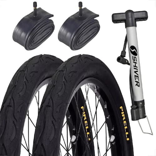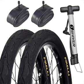 Itens inclusos: 2 unidades Pneu Pirelli Tornado Beta Aro 26x2.125 2 unidades camara de ar aro 26 Shiver Bico grosso 33mm 1 unidade bomba de ar manual shiver 300X29MM
