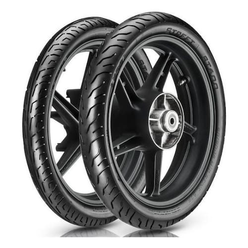 KIT CONTÉM:1 - Pneu Vipal 80/100-18 47P ST600 (dianteiro)1 - Pneu Vipal 90/90-18 57P ST600 (traseiro)O Vipal ST600 tubeless, uma linha inovadora de pneus sem câmara, com a Tecnologia Vipal de Profundidade Variável (PV), que possui sulcos menos profundos nas laterais do pneu e mais profundos na região central, onde há um maior desgaste, trazendo um novo patamar de desempenho para motos de baixa cilindrada.Além disso, conta com um novo composto exclusivo, desenvolvido especialmente pela Vipal, fazendo com que o Vipal ST600 tenha um dos melhores desempenhos quilométricos do mercado, resultando no menor custo por km rodado.Especificações:Marca: VipalModelo: ST600Medida: 80/100-18 + 90/90-18Aros (ambos): 18Aplicação: Dianteiro e TraseiroCapacidade (dianteiro): 175 Kg / 150 Km/hCapacidade (traseiro): 230 Kg / 150 Km/hÍndice de Carga (dianteiro): 47Índice de Velocidade (dianteiro): PÍndice de Carga (traseiro): 57Índice de Velocidade (traseiro): PMontagem (ambos): Tubeless (sem câmara)Aplicação em:Honda: Cg 150 Titan // Cg 160 Titan // Cg 160 Start // Cg 160 Cargo // Cg 160 Fan // Cbx 200Yamaha: Factor 125 i ED // Fazer 150 UBS // Factor 150 UBS // Ybr 125Dafra: Riva 150Shineray: Wy 150Suzuki: Yes 125 // Gsr 150iTraxx: Tss 150 Ean: 7897046740723