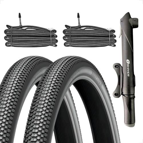 PAR PNEU LEVORIN ERUPTION 29X2.30 + PAR CAMARA DE AR SHIVER BICO FINO 48MM + MINI BOMBA DE AR SHIVER TELESCOPICA