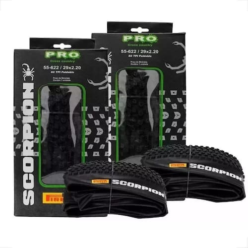 Marca: Pirelli Modelo: Scorpion PRO Medida: 29x2.20 (55-622) Tecnologia: Dual Compound Modalidade: Projetado para o segmento de MTB. Cor: Preto Peso: 600g aproximadamente (CADA UNIDADE)