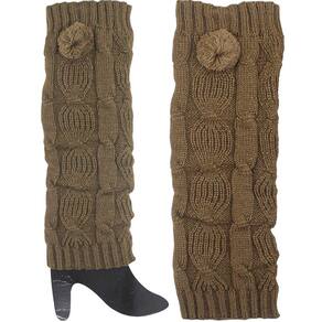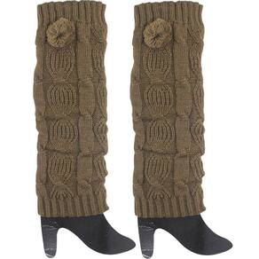 Par Polainas Feminina Adulta Malha Tricô Em Lã Marrom Claro -