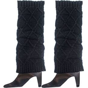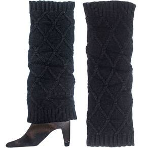 Par Polainas Feminina Adulta Meia Longa Malha Tricô Lã Preto -