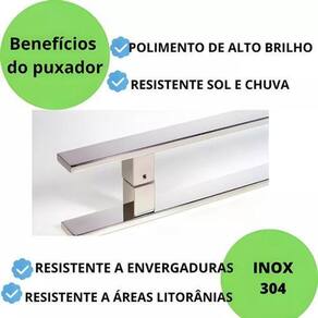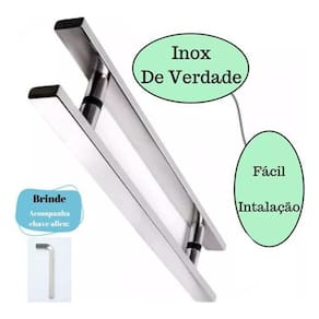 Material: aço inoxidável Acabamento: inox Formato: reto / barra chata Tamanho: 60 cm Distância entre furos: 40 cm Fixação: parafusos inclusos Aplicação: portas pivotantes de alumínio ou vidro ou madeira Durabilidade: alta
