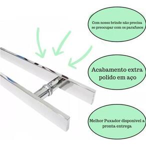 Material: aço inoxidável Acabamento: inox Formato: reto / barra chata Tamanho: 60 cm Distância entre furos: 40 cm Fixação: parafusos inclusos Aplicação: portas pivotantes de alumínio ou vidro ou madeira Durabilidade: alta