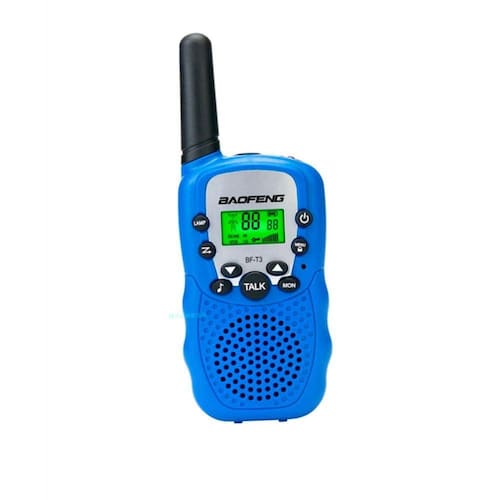 Rádio comunicador sem licença, fácil de usar, com alcance de até 3 km, visor LCD retroiluminado, lanterna LED azul, função VOX, varredura automática de canais, bloqueio de teclado, alerta de bateria fraca, tom de confirmação de discussão.Indicador de carga da bateria