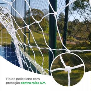 Par de Rede para Trave de Gol Futsal Fio 4mm Nylon Futebol de Salão.As Redes para Traves de Futsal Fio 4mm são ideais para uso Amador / Semiprofissional. Confeccionadas com polietileno de alta densidade e fios de 4mm, oferecem resistência a impactos da bola em alta velocidade.- Confeccionada com polietileno 100% virgem e possui tratamento Anti-UV, prolongando a durabilidade em diversas condições;Especificações:- Dimensões: 3,20m na largura, 2,10m de altura, 0,40m de recuo superior e 1,00m de recuo inferior;- Malha (Distância entre nós): 12x12cm;- Fio: Confeccionado no fio 4mm de polietileno de alta densidade - 100% virgem, com tratamento contra as ações do tempo (U.V);- Cor: Branca.Contém:- Par de redes para gol (2 peças);- Traves do gol não inclusas.