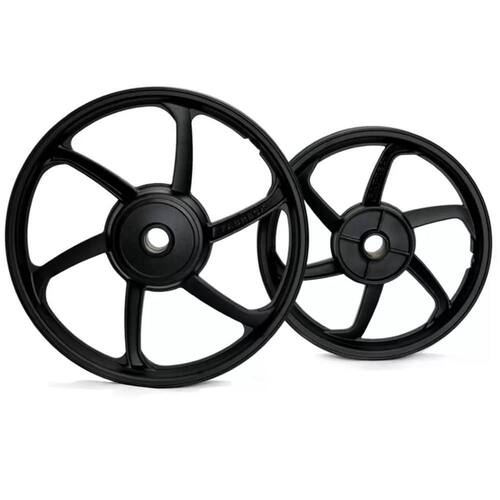 Compatibilidade: titan 150 ex/ esd/ esdi Ano de fabricação: 2014 Material: alumínio Acabamento: pintura eletrostática Cor: preto fosco Freio: a disco Quantidade: par roda dianteira e traseira