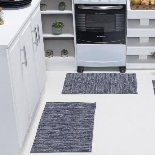 Par de Tapete Jacquard Antiderrapante Cozinha Banheiro Quarto Sala Estampa Geométrica Cor: Mesclado azul marinho Os tapetes são itens indispensáveis na decoração da casa, pois trazem toques de cor e personalidade, e também conforto térmico para os ambientes.
