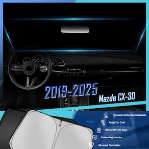 Tombyda Para-brisa para Mazda CX-30 2019-2025 CX30 Acessórios Janela Frontal Protetor Solar Personalizado Design de Camadas Duplas - Personalização exclusiva: para-sol de para-brisa personalizado para caber nos para-brisas frontais, oferece um ajuste firme e seguro sempre - Fácil de usar: o para-sol do para-brisa do carro Tombyda pode ser facilmente instalado ou dobrado em poucos segundos, o material de poliéster de alta densidade evita que o painel interno do couro rache ou desbote - Proteção contra raios UV: O protetor solar oferece cobertura total sem qualquer vazamento de luz, bloqueando 99,9% dos raios UV e luz solar prejudiciais, fornecendo proteção confiável contra o brilho do sol e mantendo um ambiente fresco e confortável - Materiais premium: o pára-brisas Tombyda oferece isolamento duplo espesso, sem deformação após dobrar resistente, garantindo proteção dupla solar de longa duração para o seu carro - Economia de espaço: O design dobrável de um protetor solar frontal permite fácil armazenamento sem ocupar muito espaço