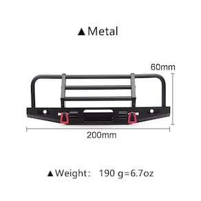INJORA Para-choque dianteiro ajustável com luz de LED para TRX4 Axial SCX10 SCX10 II 90046 90047 peça de atualização de carro RC (preto) - Feito de alumínio de alta qualidade para maior proteção e leveza - Este para-choque vem com 3 suportes de montagem para muitos corpos - A altura de montagem é ajustável, aumenta o ângulo de aproximação e adiciona proteção ao chassi - O para-choque dianteiro adiciona um toque de atitude e estilo à extremidade dianteira do seu caminhão e protege a frente do seu caminhão em impactos de baixa velocidade - Vem com gancho de reboque de metal e luz LED, adequado para rastreador RC 1/10 TRX4 SCX10 90046 90047 e assim por diante
