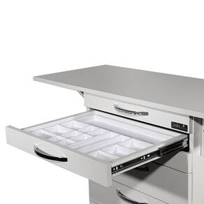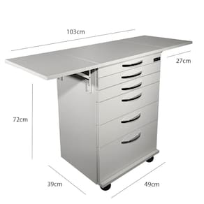 DEKI MÓVEIS CLÍNICOS, a mais recomenda entre os esteticistas!CARACTERÍSTICAS- Incluí 1 (uma) bandeja divisória com 15 (quinze) espaçamentos, de modo que você, esteticista organize seus materiais- Medium Density Fiberboard, conhecido como MDF, com tecnologia europeia- Na cor branco- Pegadores em metal maciço, cromado hyper-resistentes- Produto direto do fábrica!- Abas dobráveis (duas) que multiplicam o a área útil do tampo- Rodízios de alta performance que deixam o deslizar suave- Acabamento TX, que garantem muita agilidade e facilidade na hora da limpeza- Tudo o que você precisa num só produto, leveza, estilo e resistência!- Gavetas dispostas de maneira harmoniosa, são 5 (cinco) no total, instaladas com corrediças telescópicas, a permitir que você tenha em seu favor um abrir e fechar leve e suaveATENÇÃO!!! A PRIMEIRA GAVETA NÃO ABRE, É FIXA, SERVE APENAS PARA MOVIMENTAR O GAVETEIRO COM RODÍZIOS!!!Para Esteticistas - Gaveteiro Com Rodízios E Abas DobráveisJÁ VEM PRONTO!!! O GAVETEIRO COM RODÍZIOS CHEGA MONTADO ATÉ VOCÊ!!!PRONTA PARA SER UTILIZADA, NÃO PERCA TEMPO COM MONTAGENS!!!QUANTIDADE DE GAVETAS05 (cinco)QUANTIDADE DE ABAS RETRÁTEIS02 (duas)MATERIALEstrutura em MDF da melhor qualidade e puxadores Liga ZamakCORBrancoMEDIDAS EXTERNASLargura 49cm x Altura 72cm x Profundidade 39cmLargura das abas 27cmLargura total com abas levantadas 103cmMEDIDAS INTERNAS2 gavetas com Largura 39,5cm x Altura 4,5cm x Profundidade 30cm2 gavetas com Largura 39,5cm x Altura 9,5cm x Profundidade 30cm1 gaveta com Largura 39,5cm x Altura 15cm x Profundidade 30cmMATERIAL DOS PUXADORESMetal cromadoCOMPOSIÇÃO5 gavetas e 2 abas retráteisQUANTIDADE DE RODÍZIOS04 (quatro) rodízios com tratamento superficial da fixação zincadoNOTA FISCALEmitimos notas fiscais em todas as nossas vendasQUALIDADENossos produtos são testados e aprovados por uma equipe especializada de profissionais, passam por minuciosos testes de qualidade antes de serem embalados e enviadosGARANTIATODA a linha de produtos da DEKI MÓVEIS CLÍNICOS possuí 3 meses de garantia contra defeitos de fabricaçãoPRODUTOS A PRONTA ENTREGAA DEKI MÓVEIS CLÍNICOS, possuí todos os móveis em estoque, portanto todos os nossos produtos são a pronta entrega. Garantindo dessa maneira, o MELHOR PRODUTO no MENOR TEMPO DE ENTREGA!MAQUINÁRIO DE PONTANossa empresa utiliza máquinas modernas de última geração que asseguram um acabamento impecável em todas as linhas da DEKI MÓVEIS CLÍNICOS, dentro das normas da NR-12, que protegem nosso quadro de colaboradores e certifica a qualidade na produçãoAVISOSFique atento, as cores podem sofrer alterações dependendo do seu monitor, além da cor, pequenos detalhes e acabamentos podem não ficar evidentes na foto, por isso as imagens são meramente ilustrativas, podendo ser alterados também os modelos de rodízios, puxadores, cuba e torneira. Todos os nossos produtos são fabricados seguindo todas as normas da ANVISALIMPEZA E CUIDADOSEstrutura: Pano umedecido com água/ agente desinfetanteCuidados: Não utilizar produtos químicos ou abrasivos na limpeza. Evite batidas e o contato com objetos cortantesOUTROS PRODUTOSEste produto pode ser utilizado separadamente ou em conjunto aos demais móveis que compõem a linha da DEKI MÓVEIS CLÍNICOS, conheça toda o nosso catálogo! móveis para clínicas, odontológicos, armários médicos, centros de estética, dermo, mesinhas para podologia, oftalmologia, orto, odonto, mesas auxiliares, odontokart, kart odontológico, torneira alavanca, ultrassonografia, ecografia, mobiliário odontológico, móveis para saúde veterinária, carrinhos para clínicas veterinárias, prático carrinho para podologia, mesa auxiliar amarela, balcão odontológico gaveteiro, mesa auxiliar carrinho para dentista, gaveteiro com rodízios para médicos, com 2 abas dobráveis mesa auxiliar clínica, carrinho auxiliar para esteticistas, carrinho para médicos, mesinha de apoio para atendimento em clínicas e consultórios, gaveteiro com rodízios para esteticistas