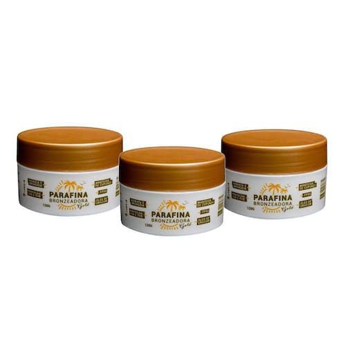 Contém:03 Parafina Bronzeadora Gold 120g Lorkin03 Espátula auxiliar para aplicaçãoO resultado é imediato. Na primeira aplicação você já fica com o bronzeado dourado, pele macia e hidratada - A pele bronzeada é visível na primeira aplicação de 30 minutos de exposição ao sol. Não mancha o Biquini, deixando seu bronzeado uniforme e pele super hidratadaSAIBA MAIS: Dermatologicamente testado Hidrata e Bronzeia Hipoalergênico FPS 8 Manteiga de Cupuaçu Proteção UVA e UVB Óleo de Urucum Registro na ANVISAContém Cânfora - Não indicado para gestantes ou lactantesLindo bronzeado com proteção solar contra os raios UVA e UVB devido ao seu FPS 8. Seus ativos e formulação exclusiva contribuem para prolongamento de seu bronzeado.Textura incrível e de fácil aplicação Acompanha espátula auxiliar aplicadora Fragrância exclusiva e envolvente.Bronzeado com proteção. A Parafina Bronzeadora Gold 120g Lorkin possui registro na ANVISA e é dermatologicamente testada. Seus ativos permitem a hidratação da pele, maciez e prolongamento daquele bronze maravilhoso. Modo de usar: Aplique uma camada generosa e uniforme sobre todas as áreas que serão expostas ao sol. Recomenda-se a aplicação 20 minutos antes da exposição. Reaplicar o produto caso tenha sudorese intensa ou utilização de borrifadores de água. No rosto, utilizar protetor solar de maior proteção.- Resultado varia de pessoa para pessoa, tempo de exposição solar, alimentação. Marca: Lorkin Cosméticos