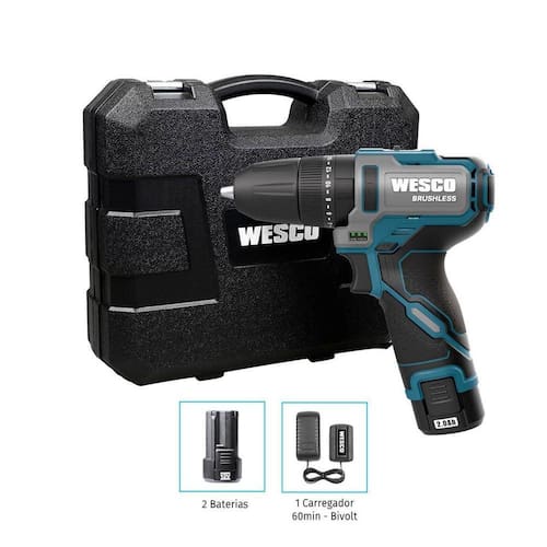 Parafusadeira/furad impacto brushless wesco ws2588k2 12v 2,0h biv 2 batUma das mais potentes da sua categoria, com motor sem escova. Maior praticidade facilitando o acesso a lugares estreitos e durabilidade, acabou de encontrarA ferramenta possui 3 funções: perfurar com e sem impacto e parafusamento.Características:Mandril sem chaveVelocidade variável e reversívelTamanho super compactoIndicador led de carga da bateria(172mm contra as de carvão com 205mm)Capacidade do mandril: 10 mmCapacidade da perfuração máximaAço: 10 mm , madeira 25 mm , alvenaria 10 mmTorque máximo: 38 n.MVelocidade sem carga 0-400/ 0-1650/minTaxa de impacto: 0-6000/ 0-24750bpmNúmero de posições de embreagem: 20+1+110 mm , madeira 25 mm , alvenaria 10 mmPossui garantia de 12 meses.Itens que acompanham:02 baterias01 carregador 60min - bivolt01 maleta