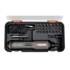 Parafusadeira a bateria 4v screwdriver pen worx wx240 Parafusadeira a bateria leve, compacta e autêntica com corpo emborrachado para garantir uma experiência ainda melhor, trabalhando com precisão, conforto e firmeza. - marca: worx - modelo: wx240 - ela possui botão reverso para parafusar e desparafusar e botão de ajuste de torque com 3 indicadores para regular às condições de trabalho e as diferentes forças de torção. - esse mesmo botão serve como indicador de carga de bateria e índice de torque selecionado. - a wx240 também conta com duas luzes de led nos dois lados do mandril para te ajudar a iluminar as áreas mais escuras. - a ferramenta ainda acompanha uma caixa de armazenamento bastante versátil e organizada com tampa transparente. - seu kit conta com 24 bits diferentes, categorizados por cores, além de um bit de impacto de 50mm, uma haste de extensão magnética e um cabo de carregamento usb de 91cm para carregá-la. - possui 18cm de altura e 35mm de diâmetro, ajustando-se perfeitamente a sua mão. - luz led; - áreas emborrachadas; - reversível; - luz de carga da bateria e torque; - ajuste de torque com indicação. Benefícios: - construção com 3 engrenagens proporcionam diferentes torques para diferentes situações; - botão com reversão facilita remoção de parafusos; - indicador de carga de bateria; - luz led facilita o trabalho em áreas mais escuras. Especificações técnicas: - bateria: 1.5 ah lithium-ion; - velocidade sem carga: 300 rpm; - torque máximo: 2.5 n.M; - duração da bateria em vazio : 45 min; - tempo para carregar a bateria: 1.5 h; - tensão inicial: 4v; - tensão nominal: 3,6v; - peso: 0.266 kg. Itens inclusos: - 24 bits para parafusar h5, h4, h3, t20, t15, t10, s2, s1, s0, sl5, sl4, sl3, pz2, pz1, ph3, ph2, ph1 ; - 1 bit de impacto de 50mm ph2 ; - 1 haste de extensão magnética de 60mm; - 1 cabo de carregamento usb; - 1 caixa plástica. - : 1 ano. Parafusadeira a bateria leve, compacta e autêntica com corpo emborrachado para garantir uma experiência ainda melhor, trabalhando com precisão, conforto e firmeza.