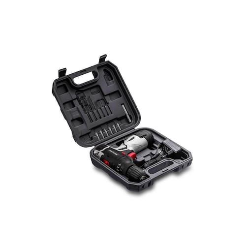 Parafusadeira E Furadeira De Impacto 3/8 Com Maleta Cinza - Multilaser Aliada perfeita para: furar, apertar e soltar!Mandril De Aperto Rápido facilitando a troca de brocas e bits. Mandril 3/8 (10mm).Função Impacto: Graças a essa função, você consegue furar concreto, além de outros materiais convencionais como: madeira e metal.- Torque: 16 Níveis- 2 níveis de velocidade: 0-350 / 0-1250 RPM.- Bateria: Lithium.- Indicador de nível de bateria.- Lâmpada LEDConteúdo:01 Parafusadeira e Furadeira01 Carregador01 Maleta12 Acessórios 01 ProlongadorVoltagem: BivoltCor: CinzaPeso do Produto: 0,980Dimensões do Produto (CxLxA): 19,2x 4,8x 20cmFabricante: Multilaser meli_shipping_mode - Sim Fabricante - Multilaser