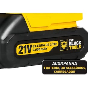 A the black tools é uma marca comprometida com a qualidade e as necessidades do cliente. Nosso objetivo é oferecer as melhores soluções para o seu dia a dia, com um design funcional e inovador. Parafusadeira furadeira de impacto profissional 21v 1 bateria com maleta tb-21pw the black tools A furadeira parafusadeira de impacto 21v da the black tools, modelo tb21pw, uma poderosa ferramenta que vai transformar suas tarefas de perfuração e parafusamento em experiências rápidas e eficientes. Ideal para e doméstico, a tb21pw oferece desempenho superior, durabilidade e conveniência. Aplicações: - ideal para perfuração em diversos materiais, como metal, madeira e plástico; - profissionais da construção, marcenaria, bricolagem e uso doméstico. Itens inclusos: - 01 broca de impacto multifuncional m8; - 04 brocas helicoidais m2,3,4,5,6; - 01 conector flexivel de 30 mm; - 01 ponteira ph2+st6 de 65 mm; - 01 ponteira ph2 de 100 mm; - 01 parafusadeira tb21px; - 01 carregador bivolt; - 02 adaptadores; - 09 soquetes; - 01 bateria; - 01 manual; - 10 bits. Ficha técnica: - diâmetro do mandril 3/8 10mm aperto rápido ; - rotação sem carga : 0-400/0-1400 rpm; - velocidade variável e reversível; - indicador de carga de bateria; - empunhadura soft grip; - opção de torque 18 + 3; - marca: the black tools - função impacto: sim; - carregador: bivolt - bateria: 2.000mah - modelo: tb21pw - voltagem: 21v Marca:the black tools Modelo: tb-21pw Peso: 1.300 kg Dimensões cxlxa : 25 x 6 x 20 cm Marca: Não Informado