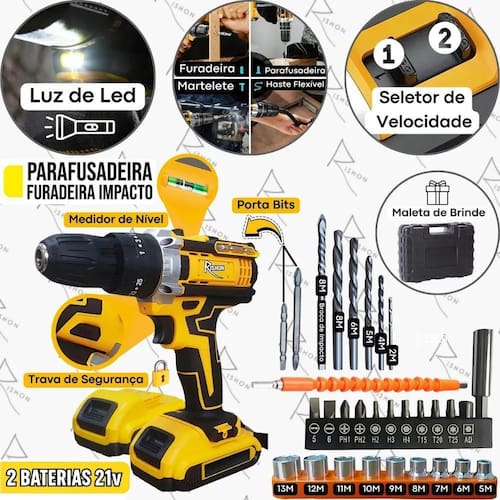 Parafusadeira E Furadeira Rishon Profissional 21V-Max Maleta
