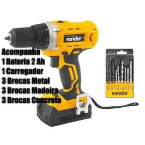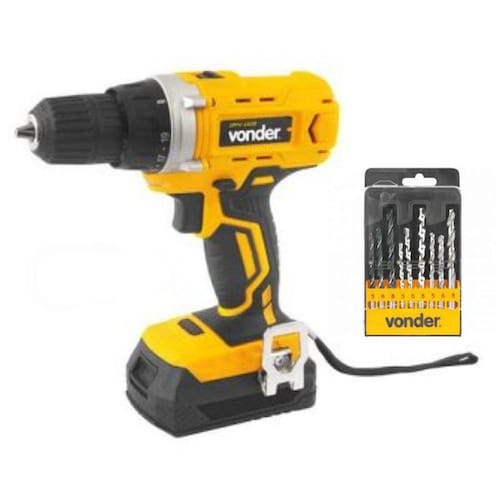 Kit composto de 1 parafusadeira furadeira 1820 18v + 1 bateria 18v 2 ampres + 1 carregador, ipfv 1820, vonder + 1 jogo de brocas combinadas, com 9 peças, aço rápido/vídea/madeira, vonder - parafusadeira furadeira 1820 18v