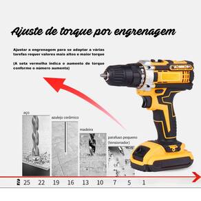 Parafusadeira Furadeira 21V Profissional Led Mandril 10Mm
