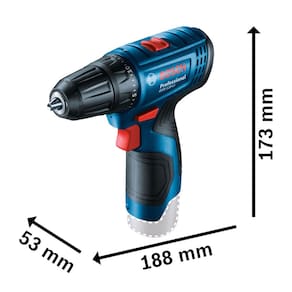 Características Marca: Bosch Modelo: GSR120-LI Tensão Bateria: 12V Tensão Carregador: Bivolt Capacidade da bateria: 2Ah Velocidade variável: Sim - 2 velocidades Torque: 30Nm Rotações por minuto: 400 - 1500rpm Mandril: 10mm Dimensões do produto (CxLxA): 170 x 53 x 188mm Peso: 1.00 Kg